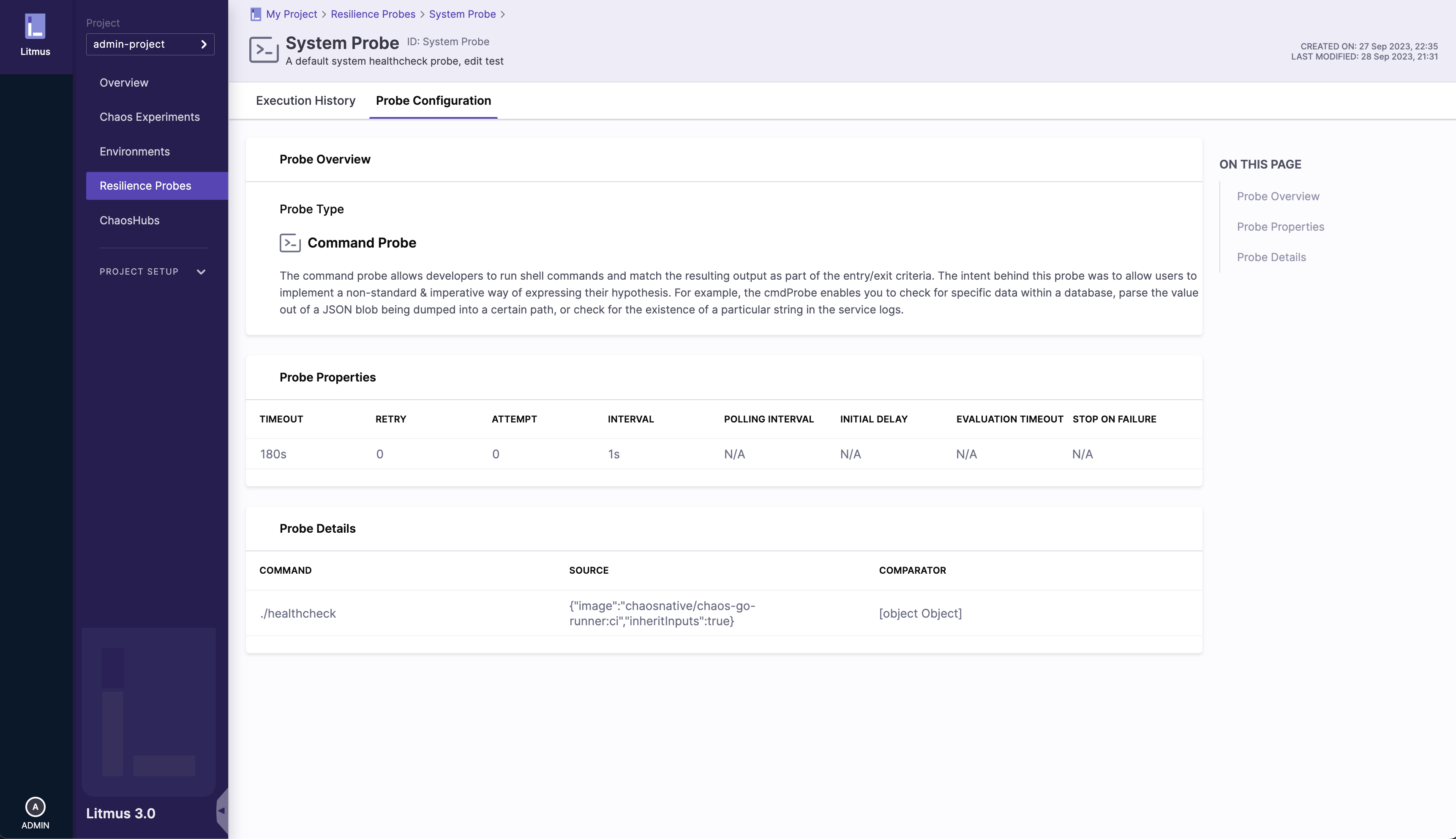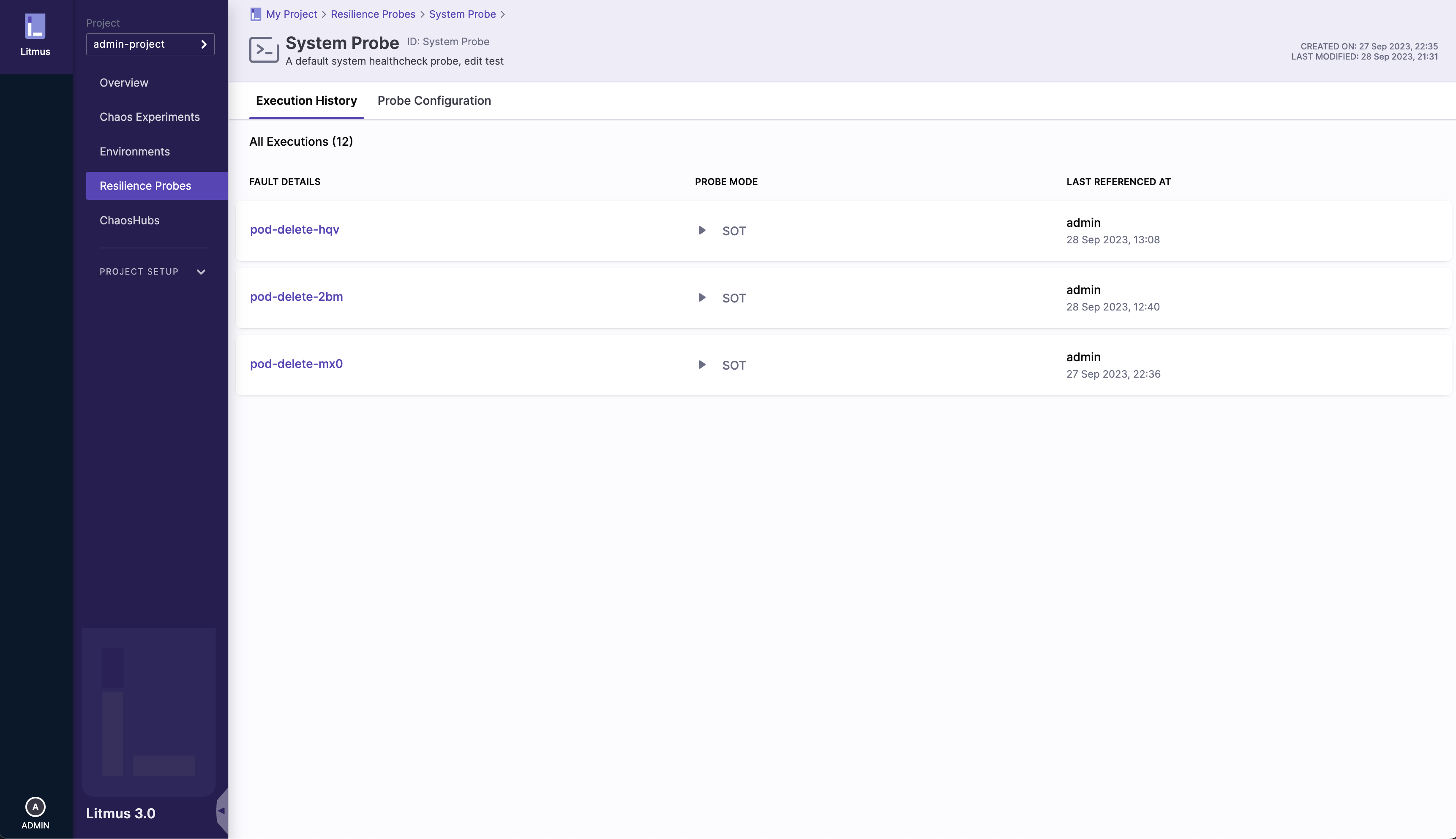 Click on the specific probe you would like to see the details of, this will redirect you to the Execution History tab: